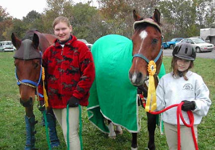 Allie and Anna with their trusty steeds, Sky and Ricky, prepare to head home
