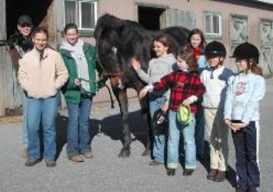| The weather was brisk, but our campers bundled up and enjoyed a fun day with the horses. They did a terrific job in our grooming contest, splitting up into teams and taking turns being grooms and then judges. They got the horses so clean that it was hard to determine the winners! In addition to the grooming contest, we discussed proper tack cleaning techniques, different markings on horses, and of course, we rode. In between projects, and warm-ups by the heaters in the tack room, campers helped fill water buckets and hay racks and made sure the barn floor was swept clean. They were a wonderful group to have with us on a chilly Monday, and the time flew by. We look forward to seeing their smiling faces at their lessons this month! |