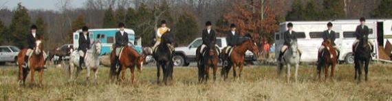 | Nine Harvest View riders participate in annual Beaufort Junior Hunt Juniors and their chaperones were guests of the Masters at the annual Beaufort Junior Hunt held Sunday, November 21st, in Franklintown. Nine Harvest View riders participated in this year's hunt, and everyone had a wonderful time out. After torrential rains on Saturday, the footing was rather sloppy, but horses and ponies negotiated their way through the obstacles without incident. The hunt divided into two groups, a fast group and a walk-trot group, and because it was a first-time experience for many of our horses and riders, we chose to ride with the slower group. The weather was unseasonably warm, and after about two hours of riding with the hounds, the group called it a day and came back to the trailers for a lovely tailgate hosted by the hunt members. The Masters complimented our riders both on their riding and on their mounts' behavior in the field, and all were invited back to hunt again this season as guests of Master McMillen. We're happy that our group represented our stable so well and look forward to more fun in the field. Click the pumpkins for more pics! |