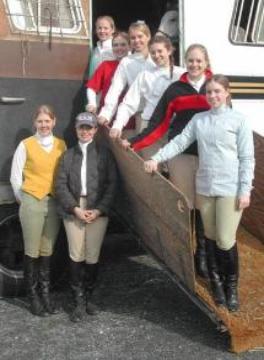 | HVS riders, left to right: Valerie & Fiesta, Katie & Dotz, Tara & Ziggy, Cindy & Buck, Caitlin & Mikey, Caitlin & Ricky, Maria & Calvin, Rachel & Kish and Hannah & Hot John. Below: Tara with guests, Valerie, Maria, Katie, Caitlin, Caitlin, Rachel & Hannah |