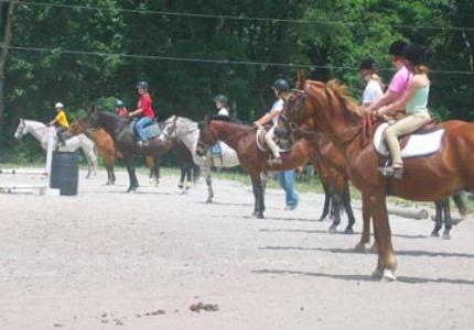 Riders love games on horseback at June HVS Fun Show Our lesson students got to try some games at our fun show on Saturday, June 18th. We started out with a game of Break & Out, followed by favorites such as Red Light Green Light, Izzy Dizzy, Relay Pairs and Dollar Bareback. We had a beautiful, cool breezy day, and spectators enjoyed cheering for the riders and snapping photos as the events unfolded. The horses were all wearing their halos and seemed to enjoy the change of routine. Riders received goody bags with items donated by our friends at A Bit More Tack in York New Salem, PA. Sami was awarded a beautiful Horseware of Ireland windbreaker for being a great sport and doing such a terrific job riding the green pony, Griffin. (See Sami springing for the finish line in the photo below.) Congratulations to all of our riders and their families who helped make our show such a success!